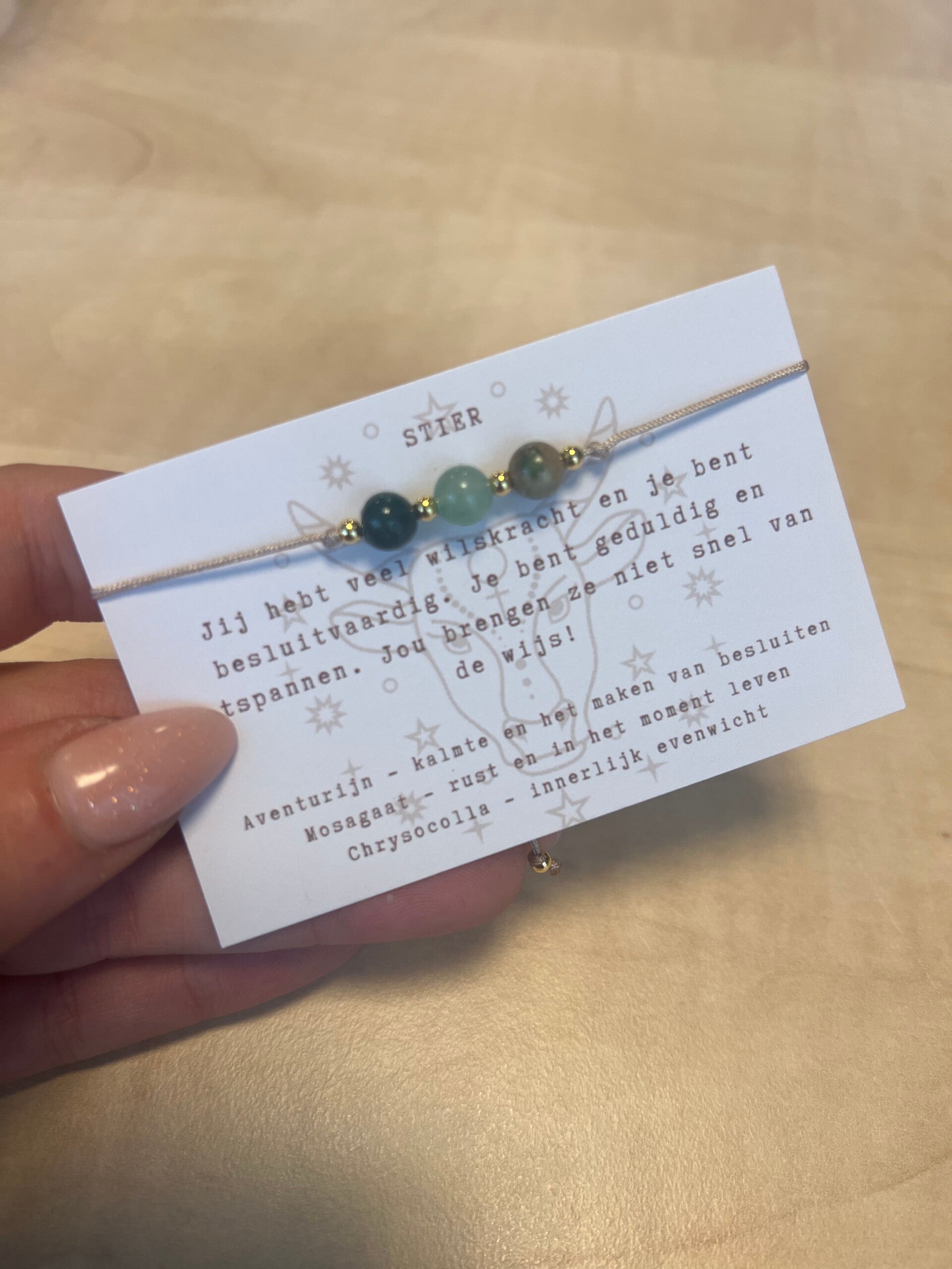 Stier armband (aventurijn, mosagaat, chrysocolla)