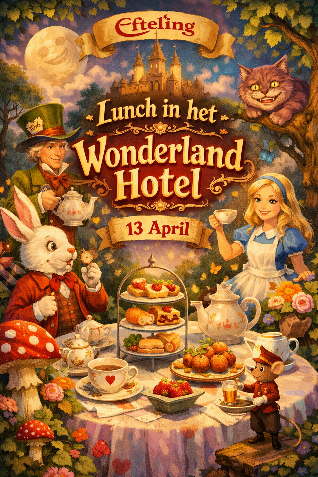 Met het afrekenen van dit product reserveer je een plek voor de lunch op 13 April in het restaurant van het Wonderland Hotel.