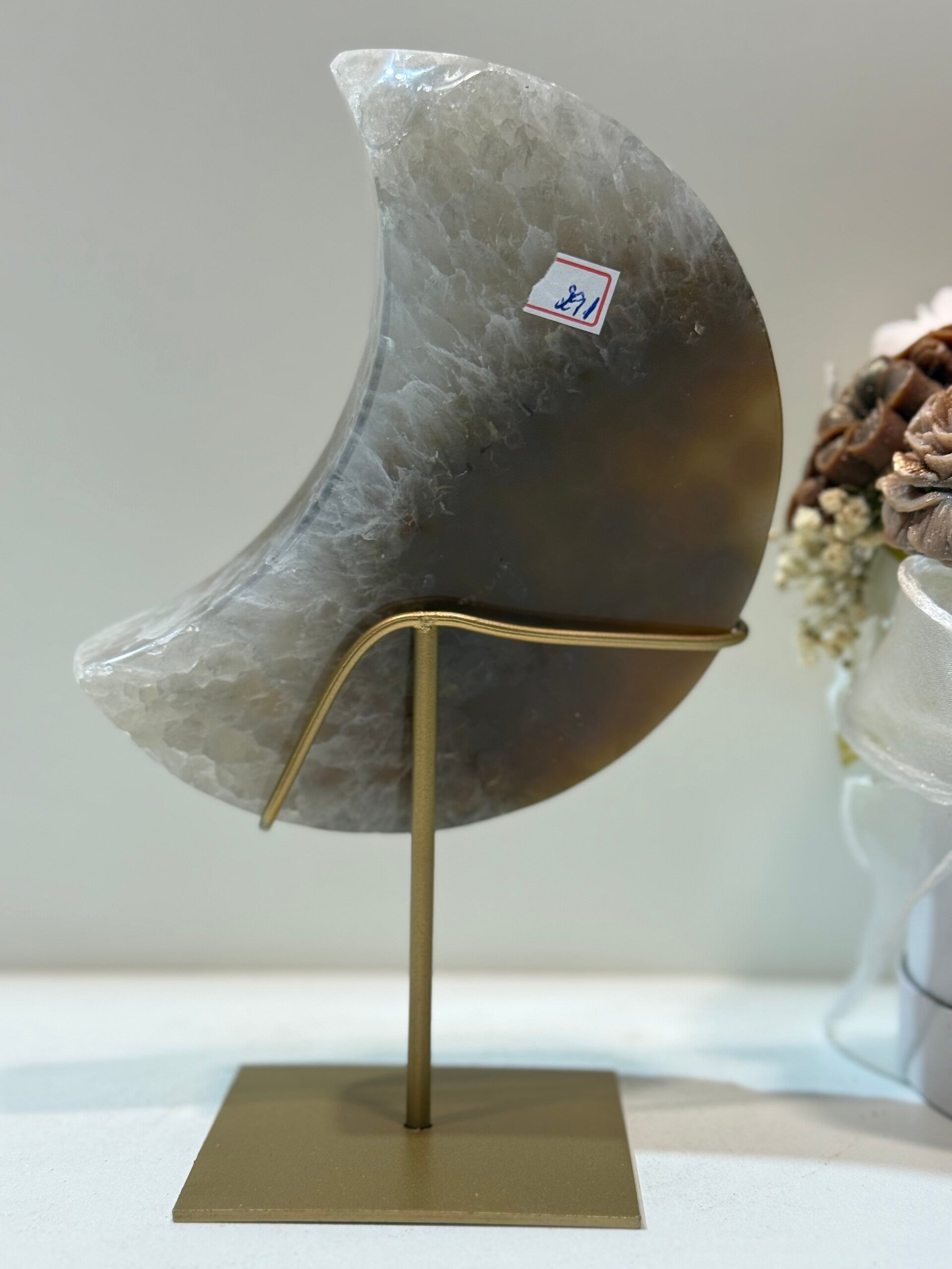 Agaat Maan op Standaard - 0,884 Kilogr.
