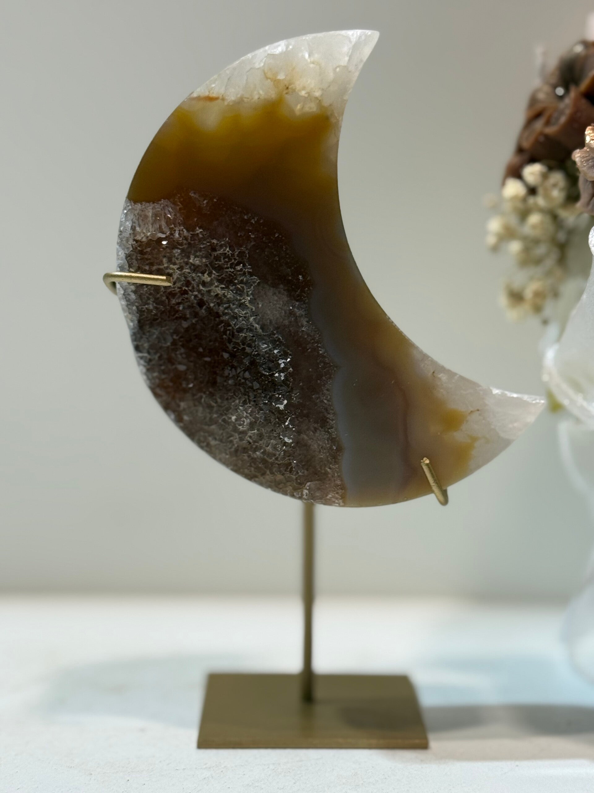 Agaat Maan op Standaard - 0,406 Kilogr.