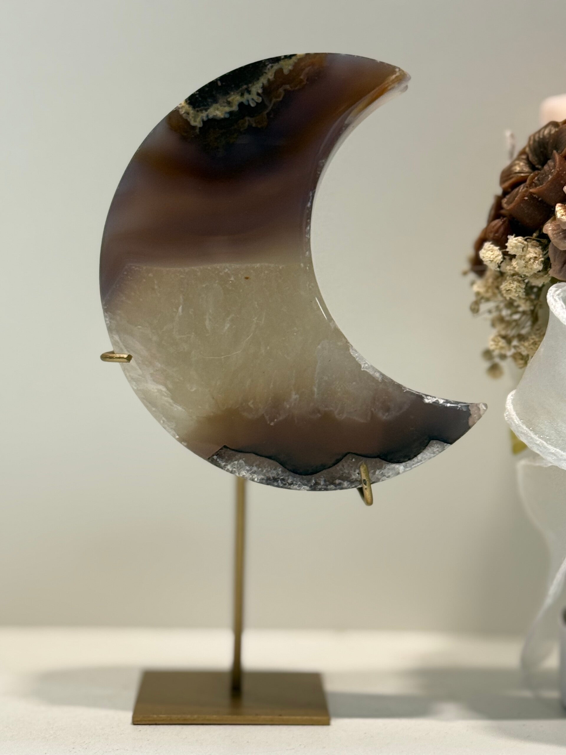 Agaat Maan op Standaard - 0,376 Kilogr.