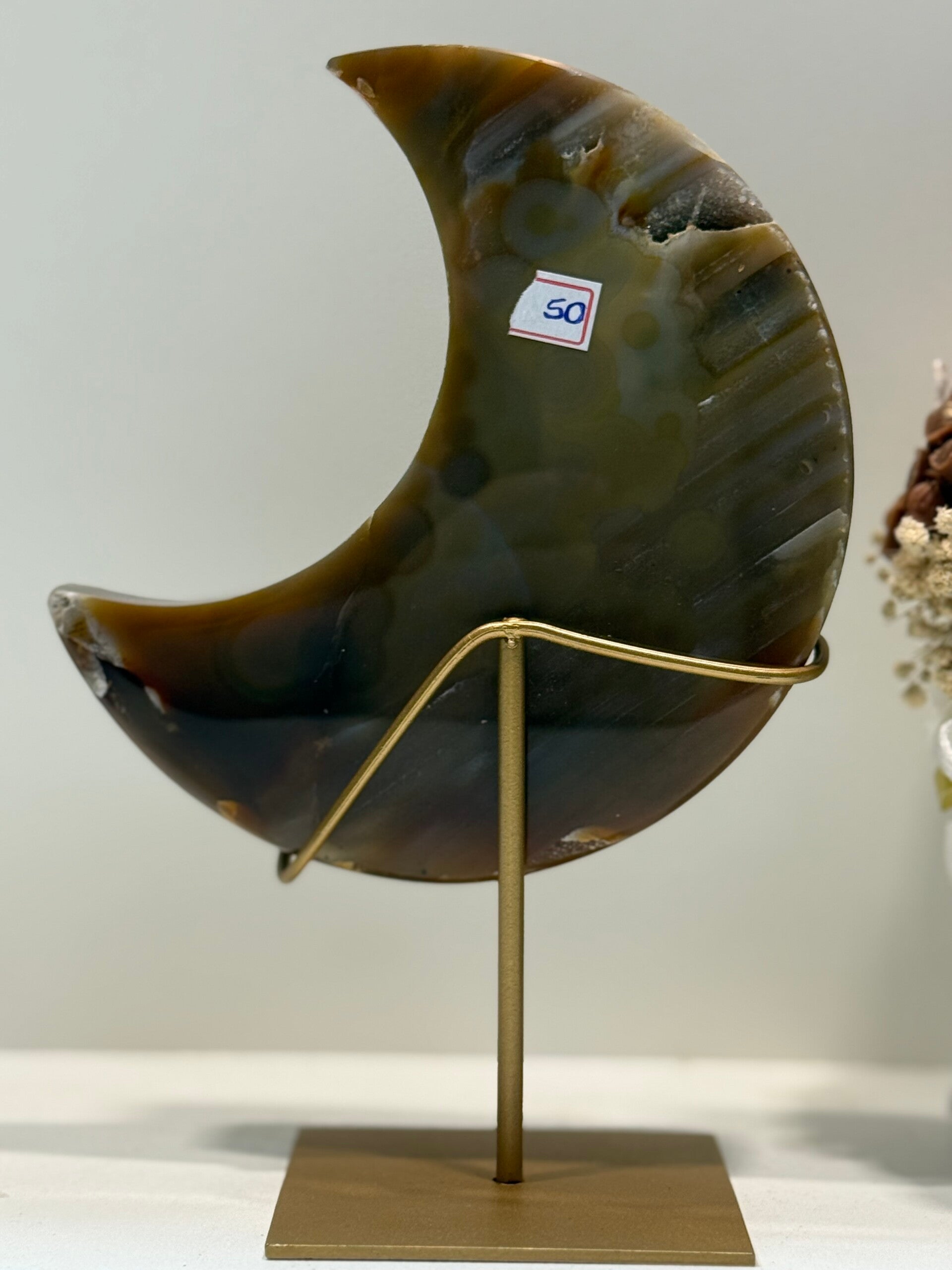 Agaat Maan op Standaard - 0,804 Kilogr.