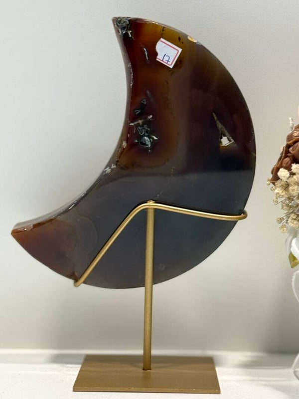 Agaat Maan op Standaard - 0,904 Kilogr.