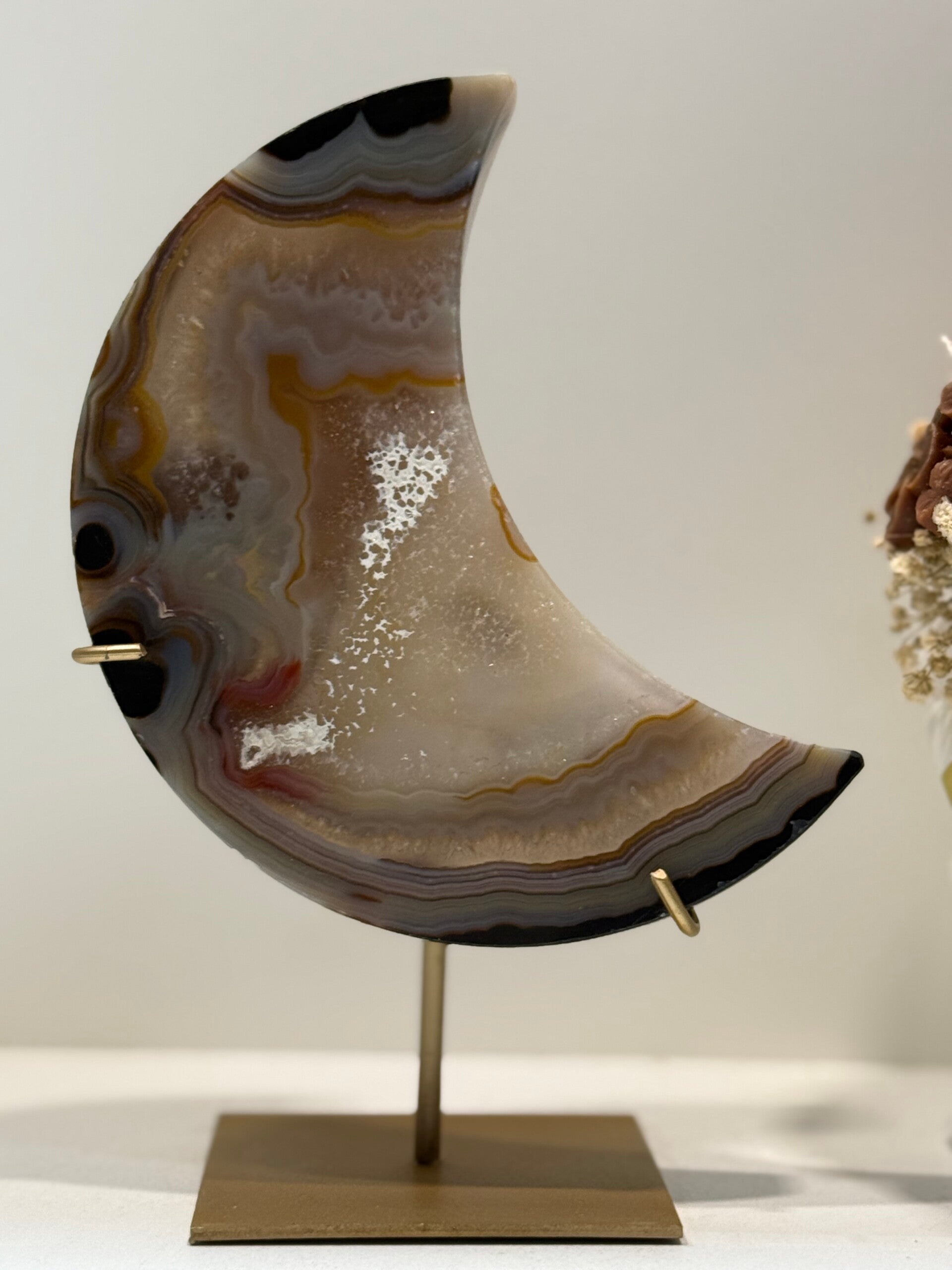 Agaat Maan op Standaard - 0,578 Kilogr.