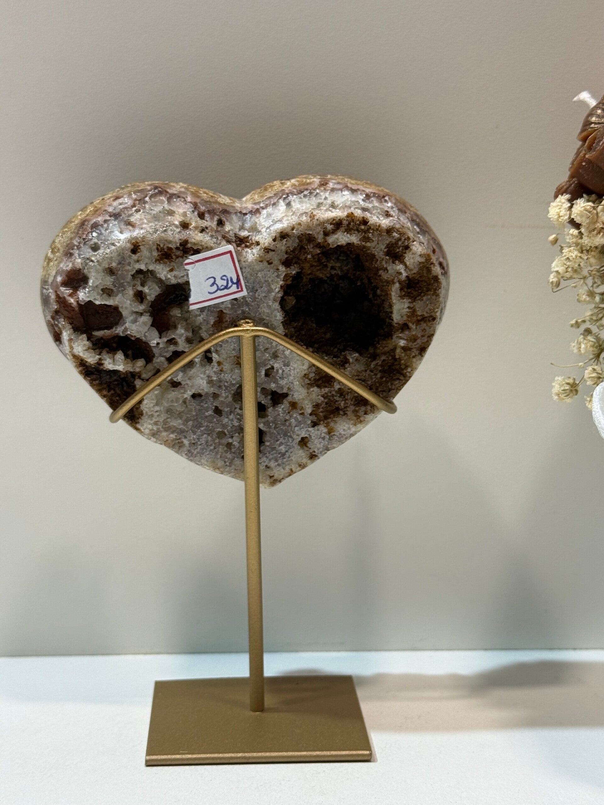 Gebrande Amethist Hart op Standaard - 0,402 Kilogr.
